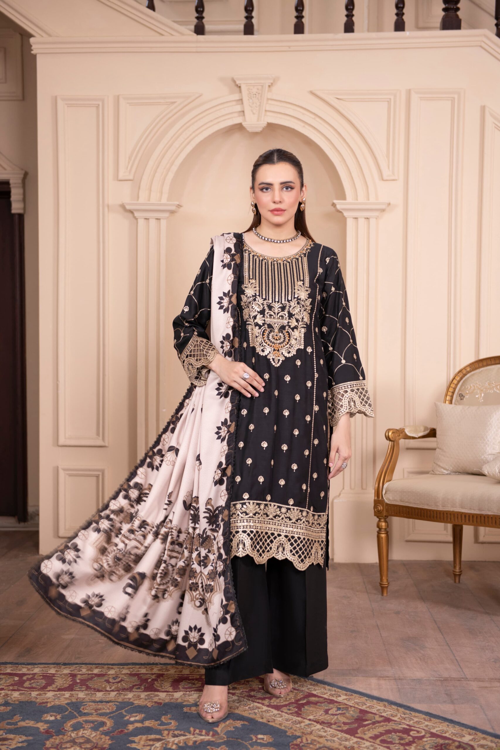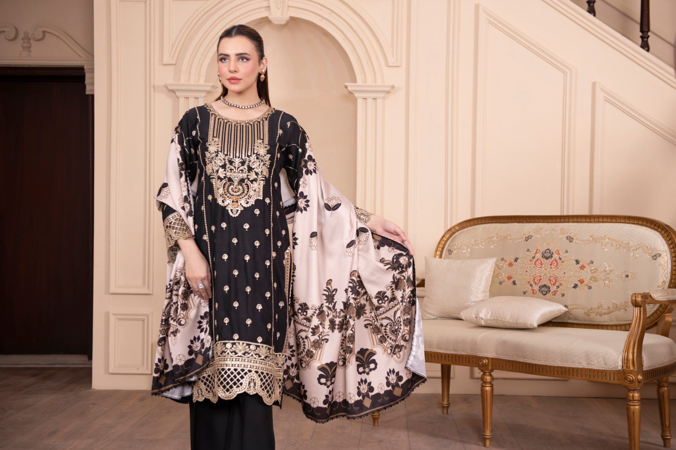 Style: Golden Embroidered Winter 3-Piece