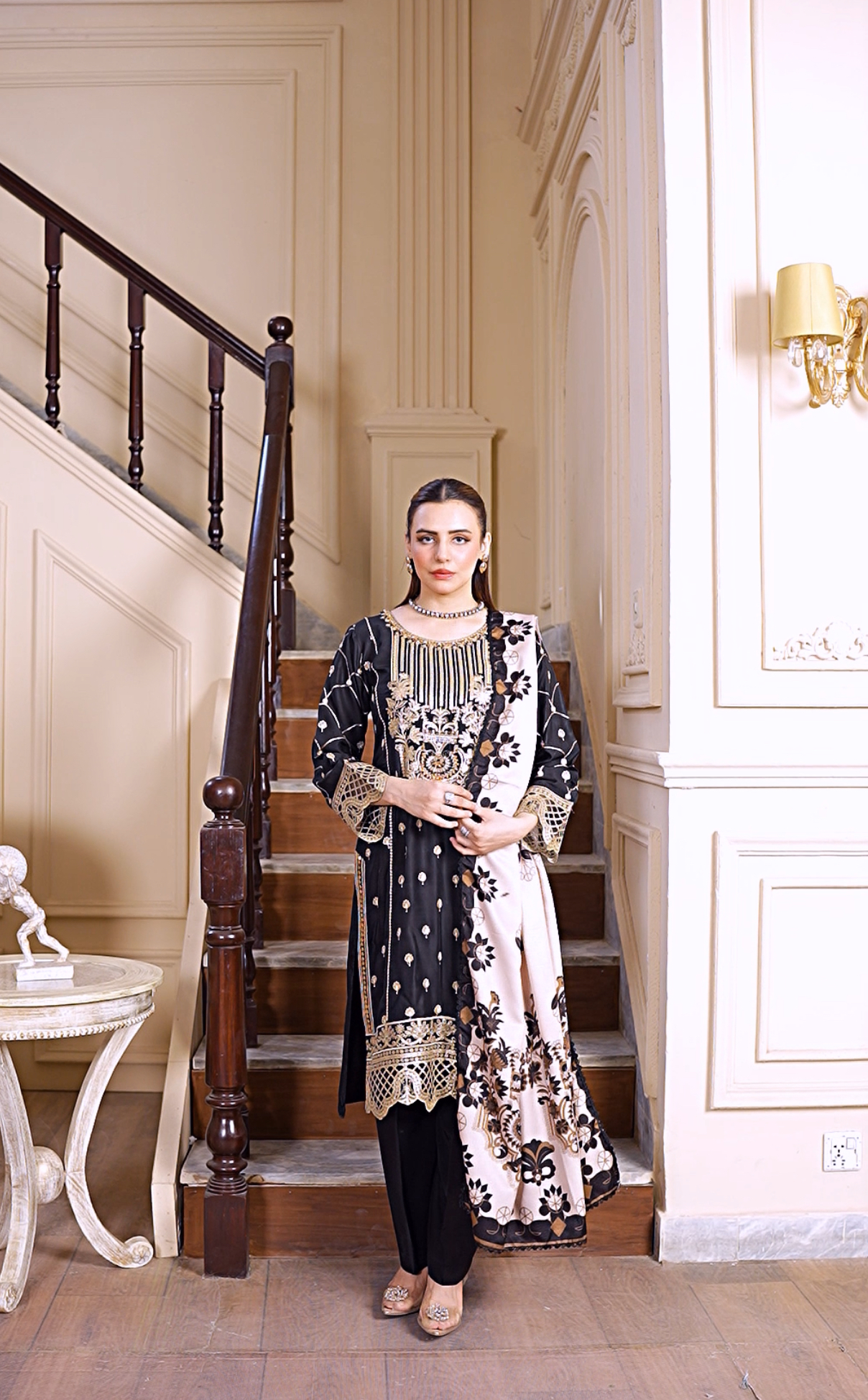 Perfect for winter evenings, festive dinners, and formal gatherings, this 3-piece outfit is designed to make you stand out with royal grace.